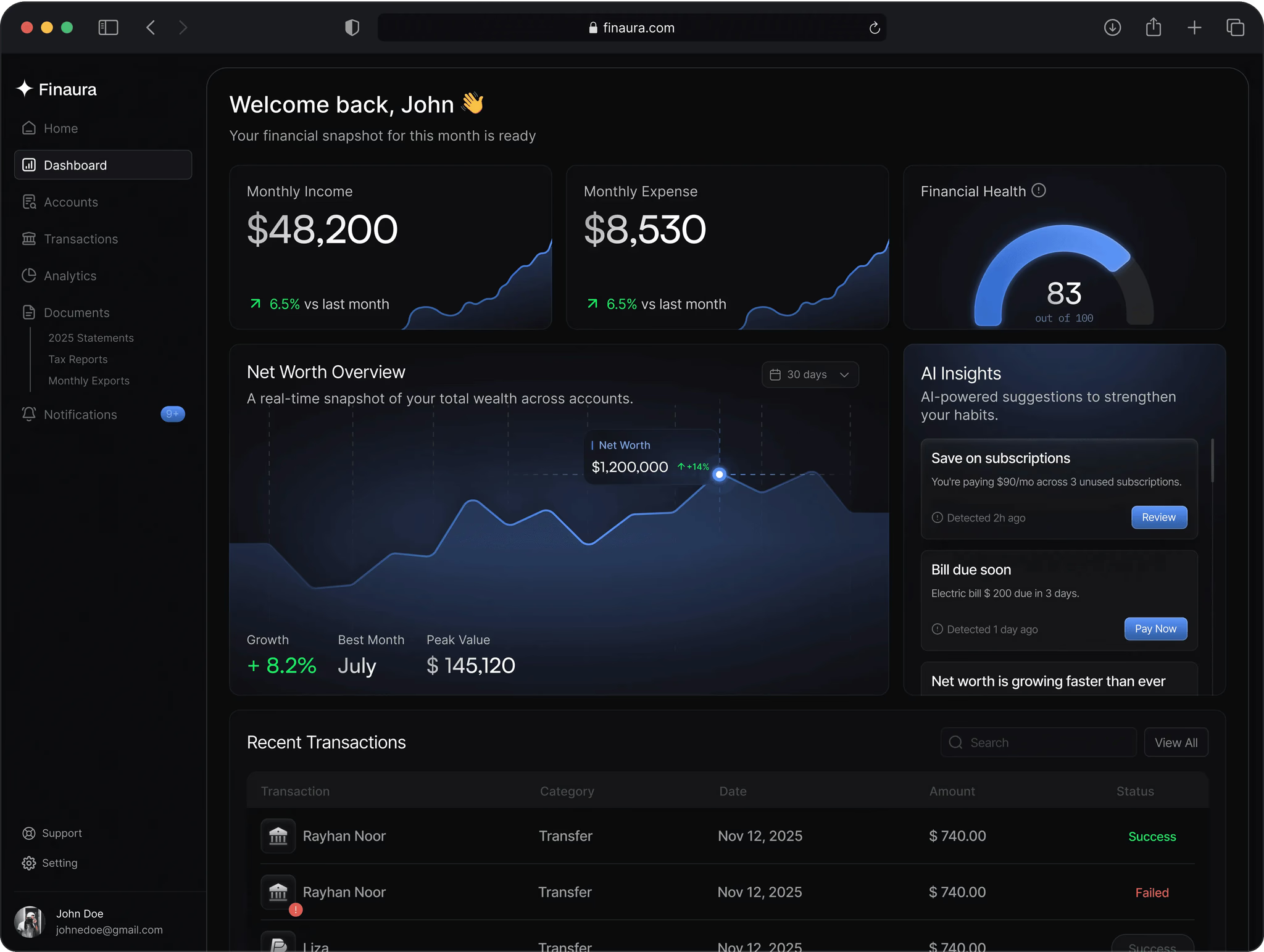 Instantly spot changes in spending, savings, and bills with insights
